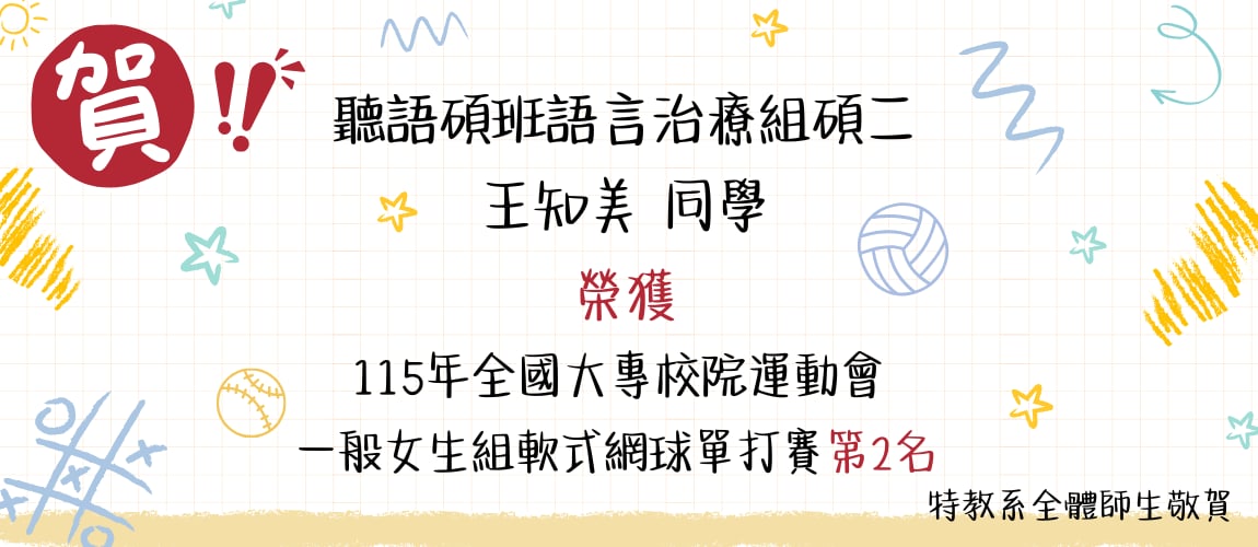 賀!!本系113級侯○心同學錄取桃園市立桃園特殊教育學校專任教師